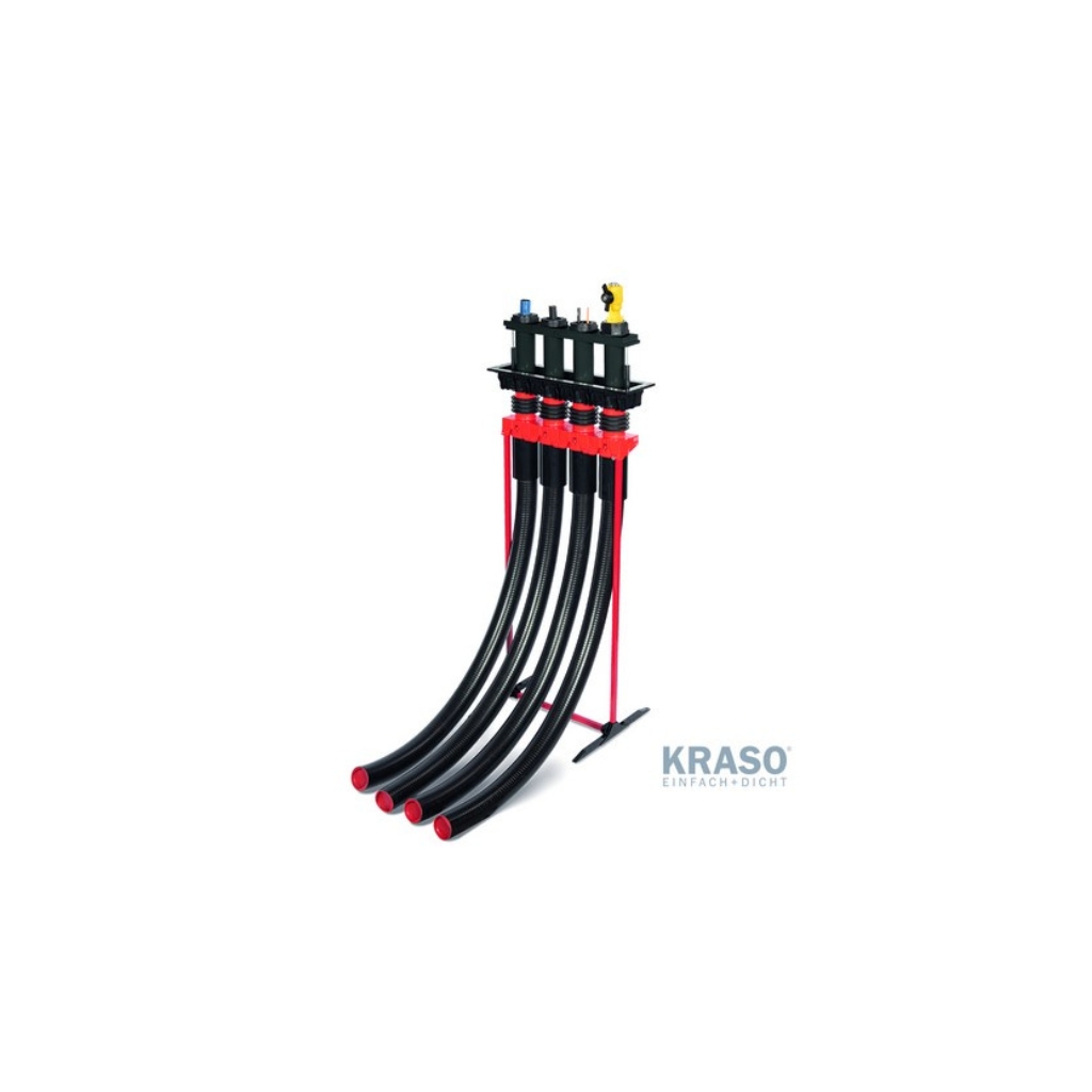 više komunalni priključak za opskrbne vodove (plin, voda, struja, telekomunikacija) za zgrade bez podruma uklj. KRASO FLS 90, instalacijski kompleti za električnu energiju/vodu (2 x), telekomunikacije, električne energije + telekomunikacije kao standardnu konfiguraciju za KRASO BKP - pod - SET - 4-skupno, željena konfiguracija za KRASO BKP - pod - SET - 3-s puta, 2-s puta, KRASO BKP Gas Instalacijski Kompleti su po izboru - DafStB vodootporna betonska smjernica: naprezalica 1
